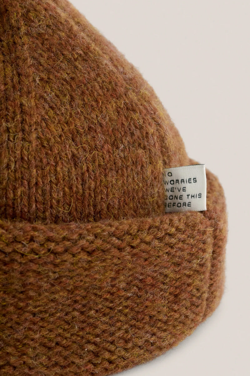 This beanie features a thick yet soft knit, crafted from a premium Italian yarn blend combining virgin and alpaca wool. The luxurious boucle texture offers exceptional warmth and comfort, ideal for chilly conditions while maintaining a fashionable, laid-back appearance. Made from pure new wool, it embodies enduring quality and comfort. Its soft, durable, and well-balanced construction makes it an excellent choice for sophisticated knitwear.