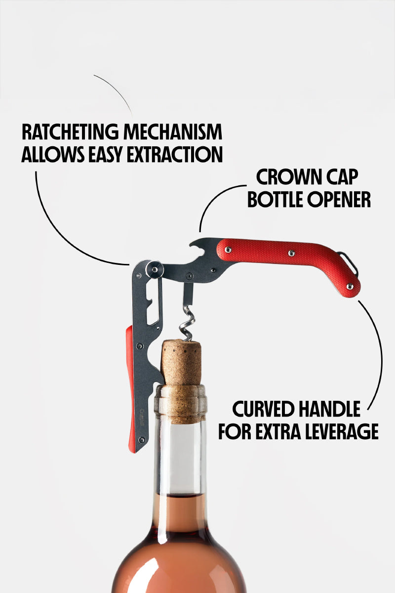 - Ratcheting mechanism allows easy extraction of corks of any length