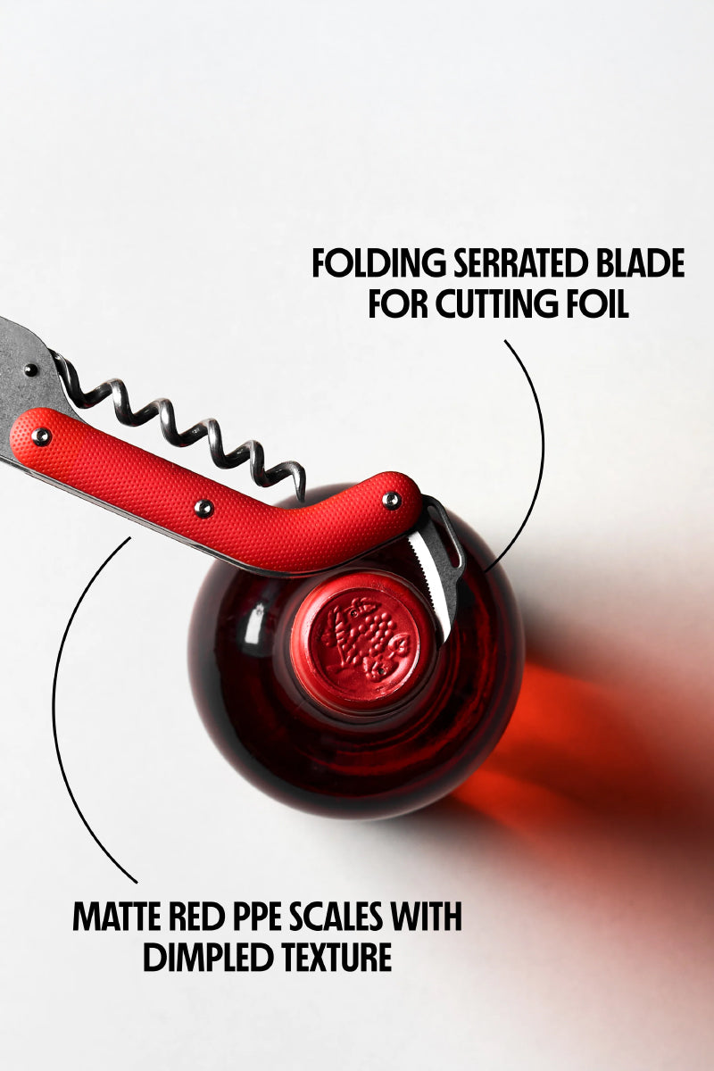 Created in partnership with sommelier André Hueston Mack, the Best Wine Key transcends its form as a piece of articulated steel to become the definitive solution for opening wine bottles. While various tools have attempted to solve this challenge, this design stands out by offering exceptional performance. Its substantial feel in hand conveys confidence and control, while the precisely angled foil knife ensures effective cutting.