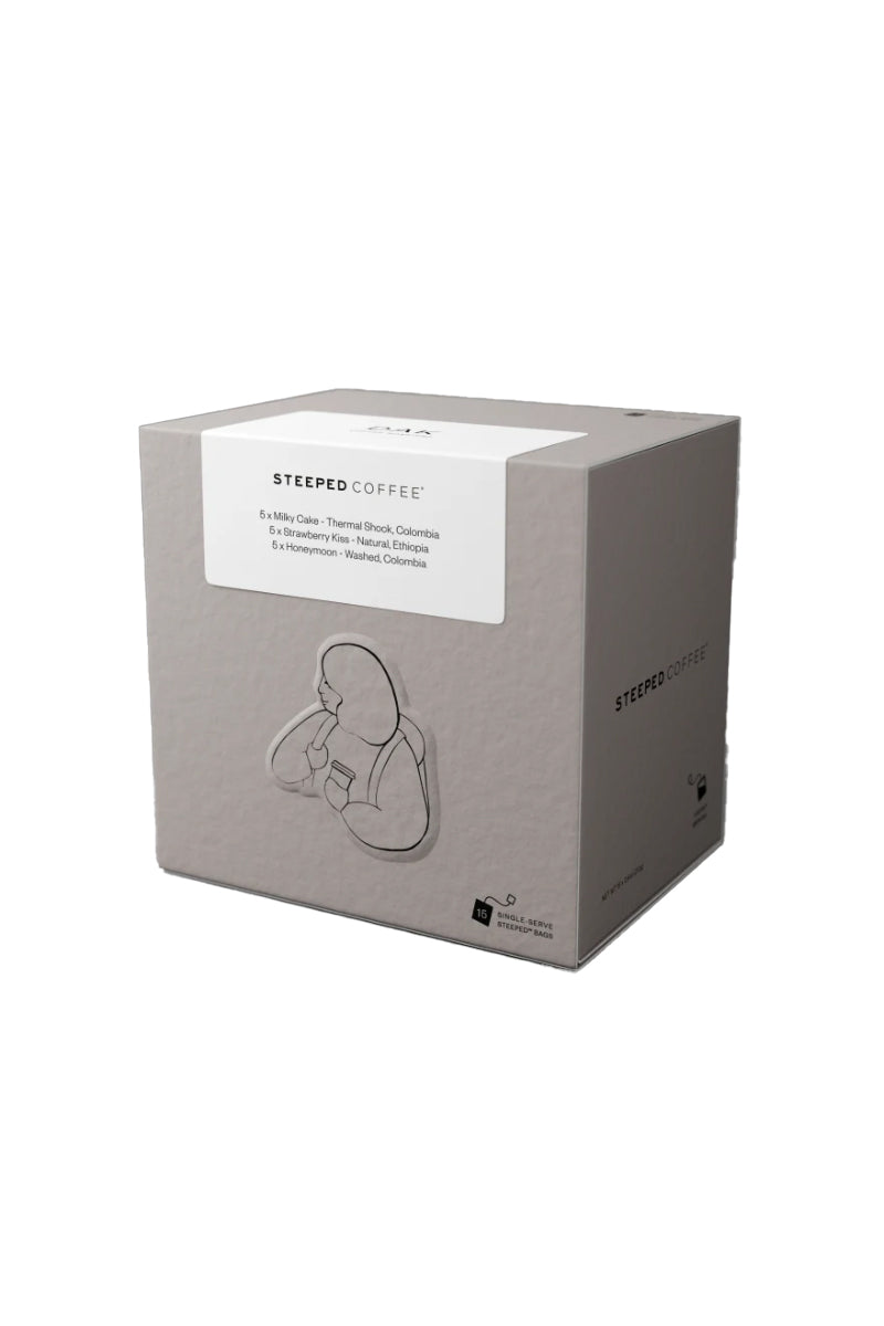 - 15 Steeped Bags, 5 bags each of 3 different coffees
