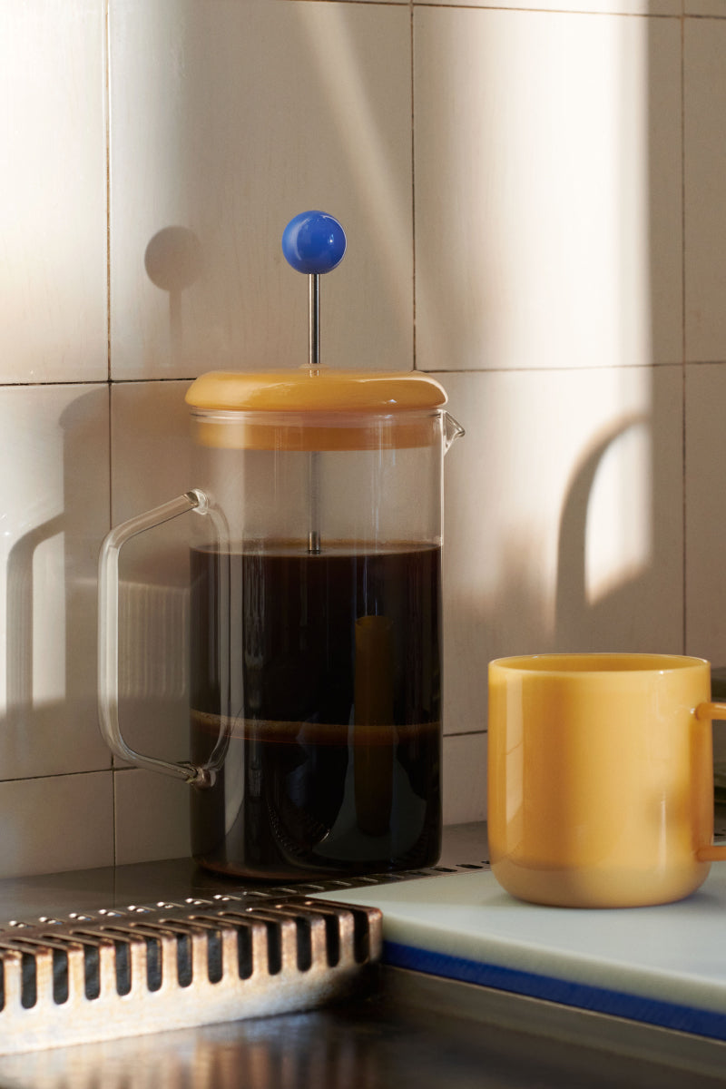 HAY’s French Press Brewer offers a modern take on a timeless kitchen tool. Crafted from robust borosilicate glass, it features a distinctively designed lid and knob, bringing both durability and a stylish element to your tea or coffee serving experience.