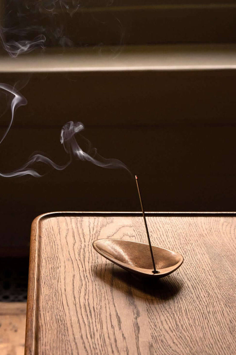An asymmetrical incense holder that brings a sense of peace and poise to any interior, designed for Aesop by Vogel Studio. Each is individually crafted, and cast in bronze, which will take on a natural patina over time. Due to the material and casting method, minor variations in surface finish may occur