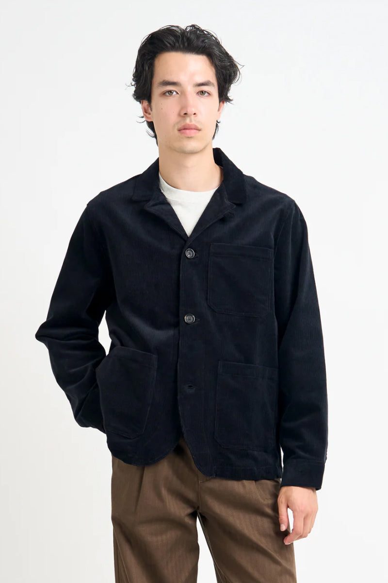 The Bradwell Cord Jacket is a boxy cotton corduroy shirt jacket featuring a cropped cut and camp collar lapel. Inspired by traditional workwear, this jacket blends classic utility with contemporary design. Crafted from fine needlecord fabric, it offers a versatile silhouette that adapts effortlessly to a variety of styles this season.