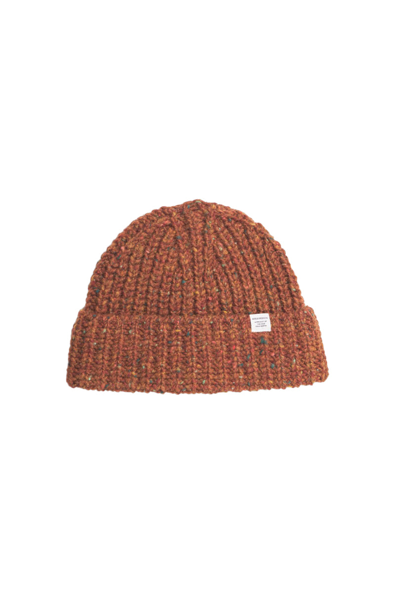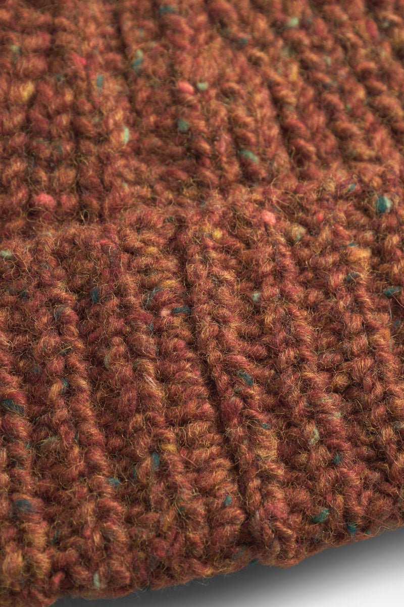 This short beanie is crafted from Donegal pure new wool using a rib stitch pattern. The yarn comes from Donegal Yarn Limited, a traditional woolen mill in Kilcar, Ireland, renowned for its iconic "Donegal Tweed" and extensive experience in producing high-quality yarns for knitting, weaving, and crafts.