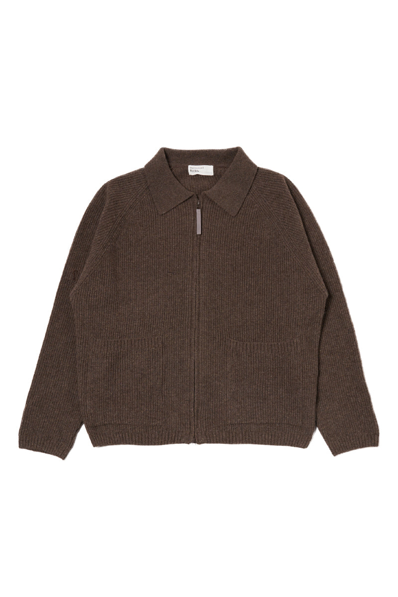 This knitted jacket features a raglan sleeve design, a fully-fashioned collar, and our distinctive two-way zip closure. It offers a relaxed fit for comfortable wear and includes a zip front for versatile styling.