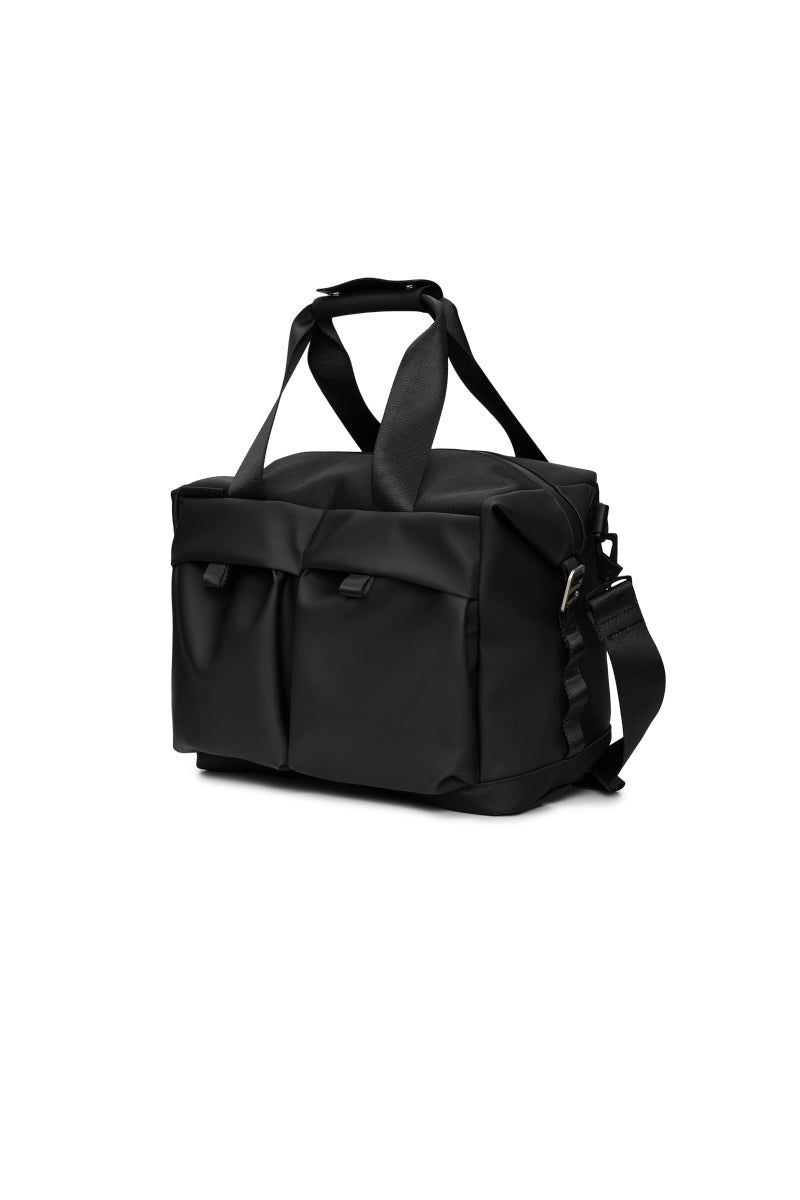 Design is finished off with webbing carry handles and attachment rings for an included detachable shoulder strap. Otaru Weekend Bag Small is cut from a mix of Rains’ signature waterproof PU fabric and waterproof woven polyester, engineered for carrying strength, durability, and a smooth feel.