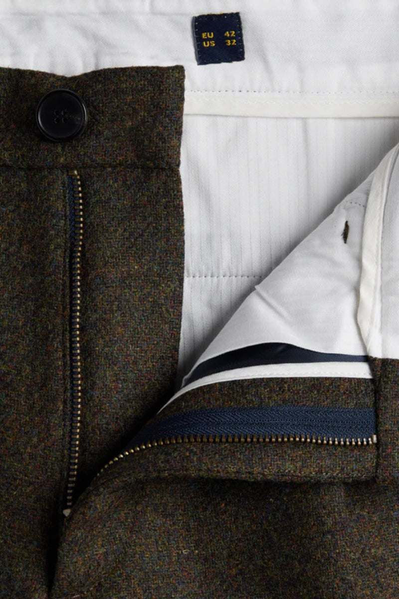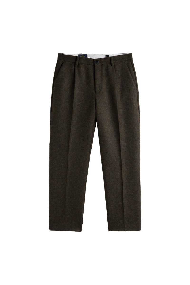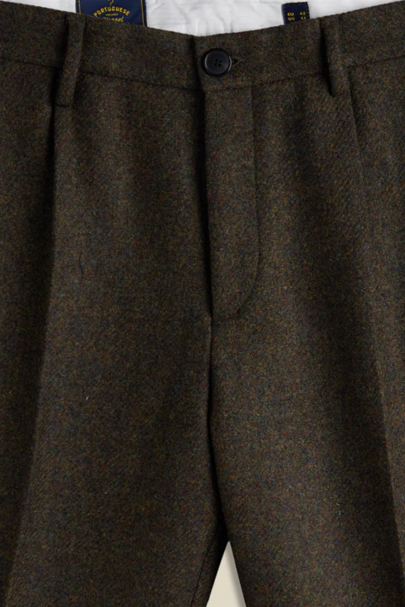 Crafted from 100% virgin wool, these trousers feature buttons made from recycled polyester, combining sustainable detail with premium material quality.