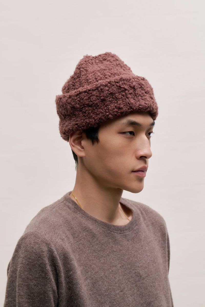 This cozy knit beanie is made from a premium Italian blend of virgin wool and alpaca, offering exceptional softness and warmth. The boucle yarn delivers a plush texture that combines durability with a refined, structured appearance. Designed for cold weather, it provides both comfort and a relaxed yet sophisticated style. The addition of polyamide enhances strength, while the alpaca contributes a delicate, fuzzy halo. Expertly spun in Italy, this beanie ensures a lightweight and elegant finish.